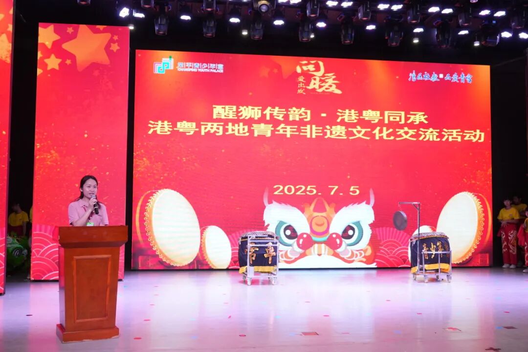 活动伊始,常平青少年宫黄飞鸿少年醒狮团的“青宫狮儿”以铿锵锣鼓开场。狮影腾跃间,地道的岭南醒狮迎宾礼仪点燃全场,让香港学子瞬间领略醒狮文化的震撼力。