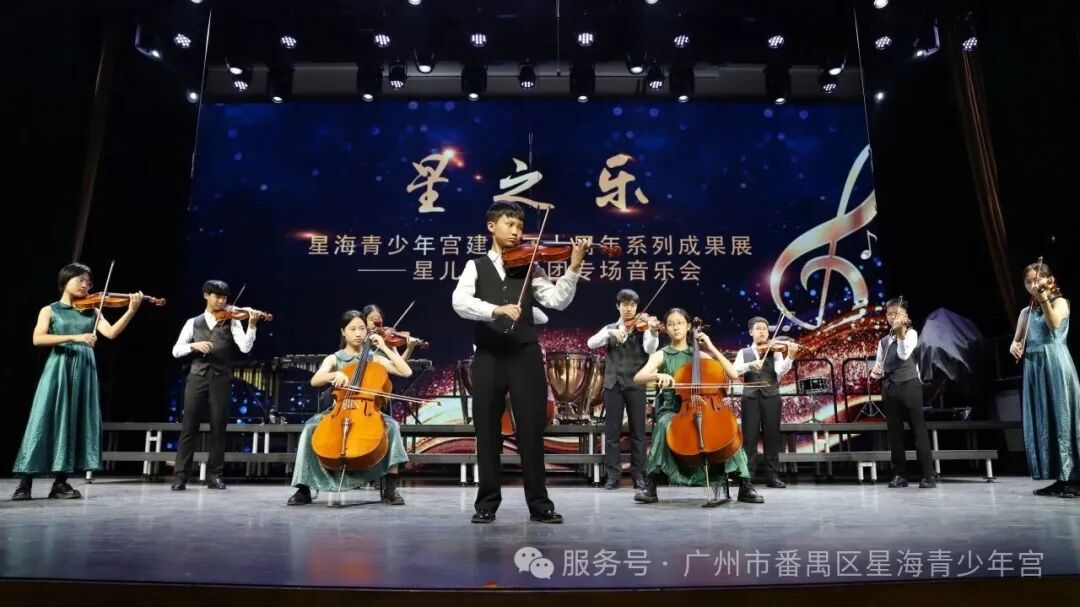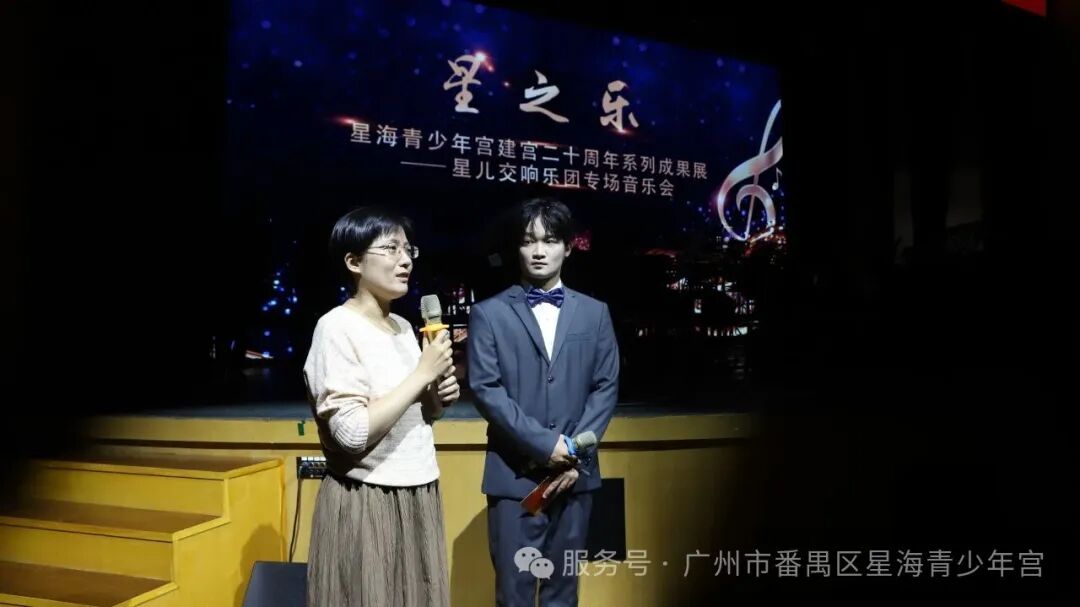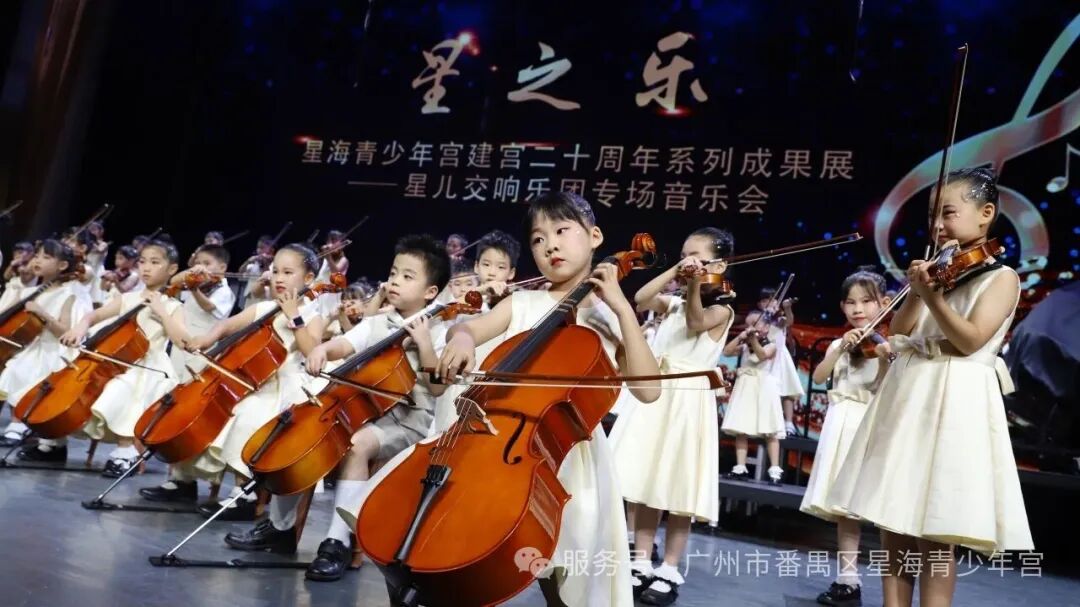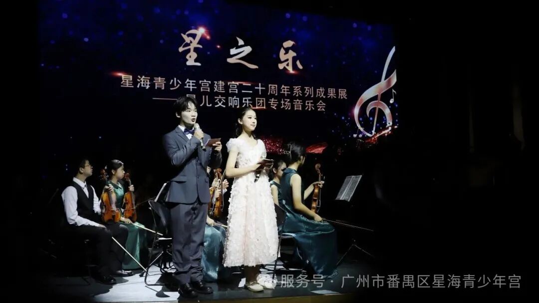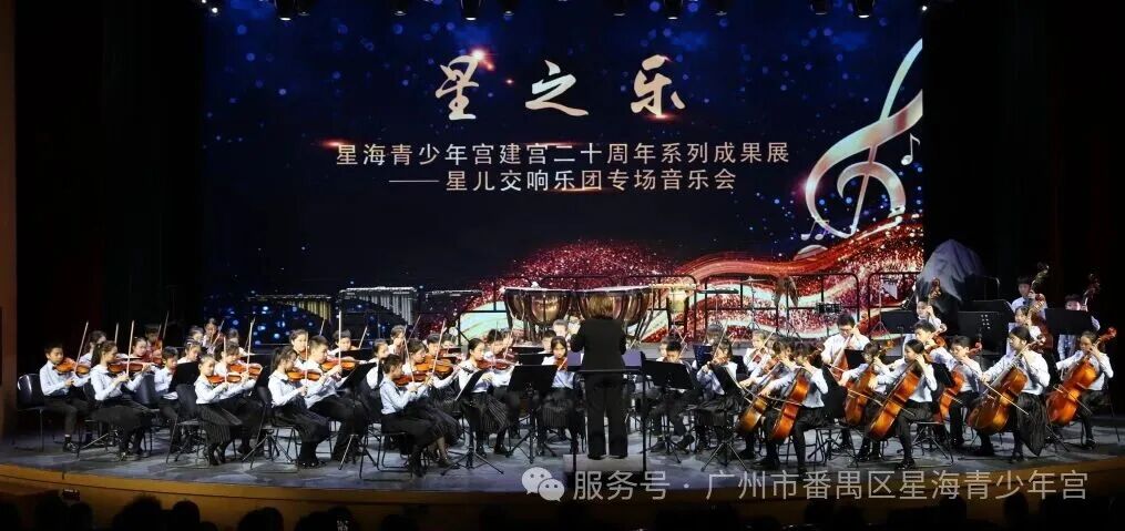 金秋送爽,丹桂飘香。10月26日晚,星海剧院内乐声悠扬、座无虚席,“星之乐——星海青少年宫建宫二十周年系列成果展·星儿交响乐团专场音乐会”在此精彩上演,为系列成果展拉开璀璨帷幕。出席本场音乐会的嘉宾领导有番禺区政协副主席卢永青,番禺区教育局党组成员、总督学黄春燕,番禺区教育局党组成员、副局长、纪委副书记陈燕专,我宫多位专家顾问,以及基地学校校长和基地幼儿园园长。音乐会由曾为星儿交响乐团弦乐声部学员张铭津、乐团基地校学员时子涵主持,乐团家长、艺术同行与到场来宾齐聚一堂,共赴这场艺术盛会。
