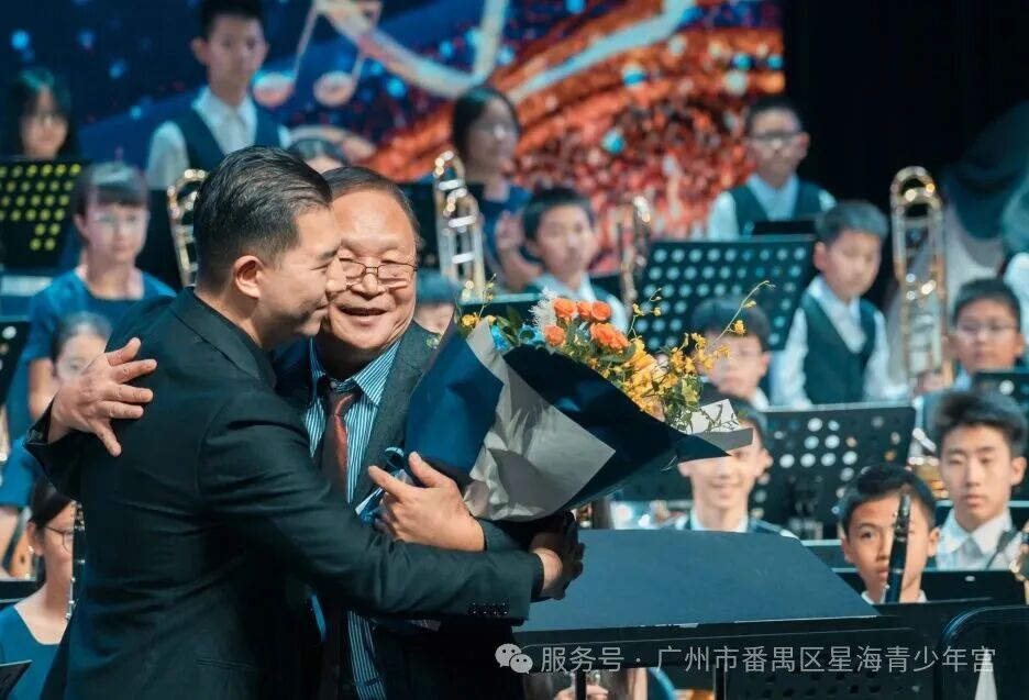 演出间隙,温情时刻接连上演,让音乐会更添温度。即将暂别乐团的首席谭申甲同学分享成长感悟,字句间满是对乐团的不舍;毕业师兄师姐录制的祝福视频,传递着对“星宫”的深切牵挂;乐团团员家长谭彦妮妈妈作为代表交流育儿心得,高度认可乐团学习对孩子艺术成长的重要意义;管乐教师许嘉洪有感而发,动情诉说对恩师李国安教授的感激。而亲自参与乐团组建的李国安教授,更是细数乐团从无到有、从有到精的历程,言语间满是感慨,也是对我宫乐团教师的专业态度与辛勤付出给予高度肯定和希望寄语。随后,管乐高级团在许嘉洪老师带领下奏响《舞之魅》《月桂满香圆舞曲》,用管乐的磅礴张力将现场氛围推向新高。此外,一路陪伴乐团成长的专家们,也以视频形式为乐团与星海青少年宫二十周年送上真挚祝福,为师生们注入继续前行的力量。
