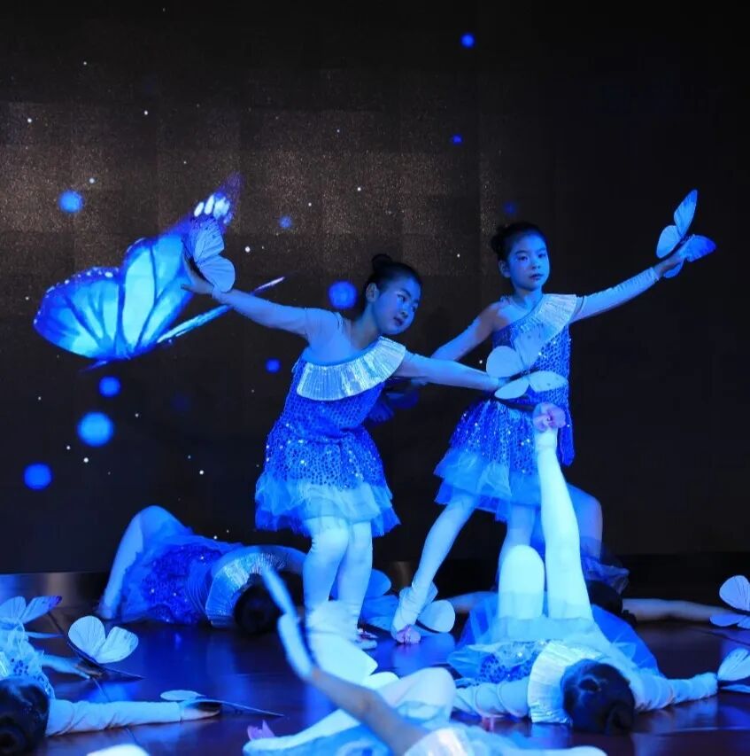 五楼剧场内,文艺演出精彩纷呈。婉转民乐、铿锵鼓点、灵动舞姿、激昂朗诵,多样艺术形式同台绽放。参演节目均由中心不同年龄段、不同艺术门类的小学员担任演员,确保每个孩子都能登台亮相、展现自我。台上孩子们自信昂扬,台下掌声欢呼声此起彼伏。这场演出不仅是才艺的展示平台,更是见证成长、锤炼勇气的生动课堂。