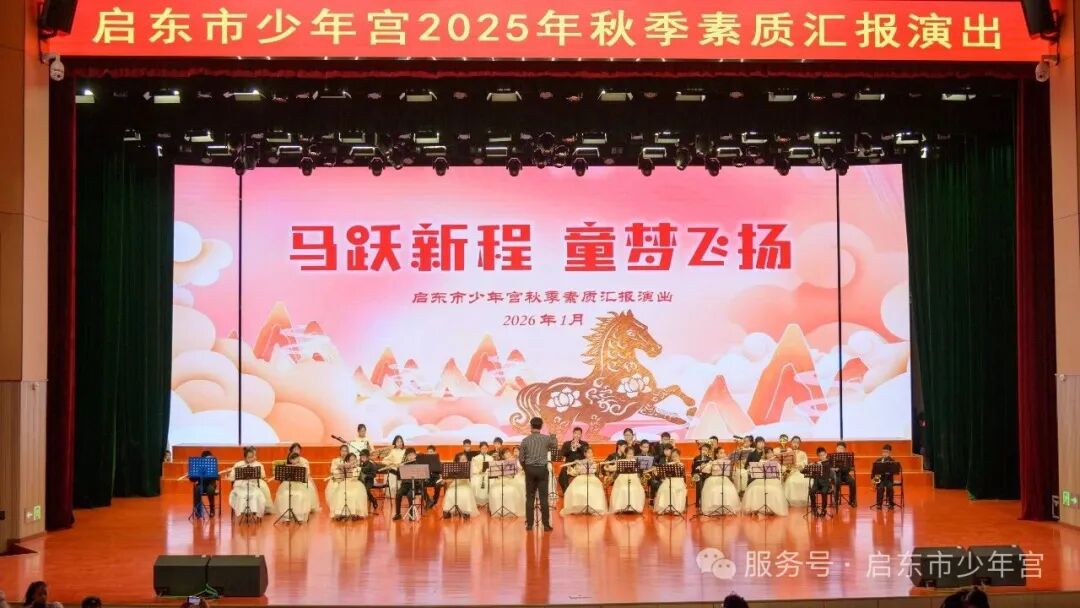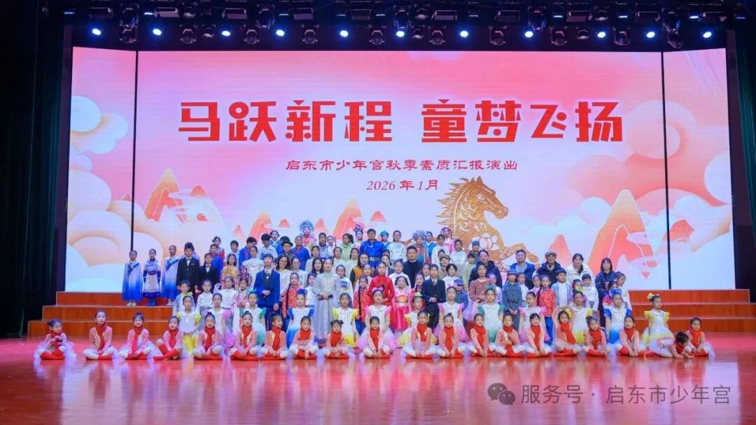 新岁将启,艺彩绽放。2026年1月24日,启东市少年宫秋季素质汇报演出圆满举行。这既是对过去成绩的总结回顾,更是对未来发展的美好展望。小小少年,大大能量,学员们用童真与才艺点亮舞台,为新的一年奏响了最动人的序曲。