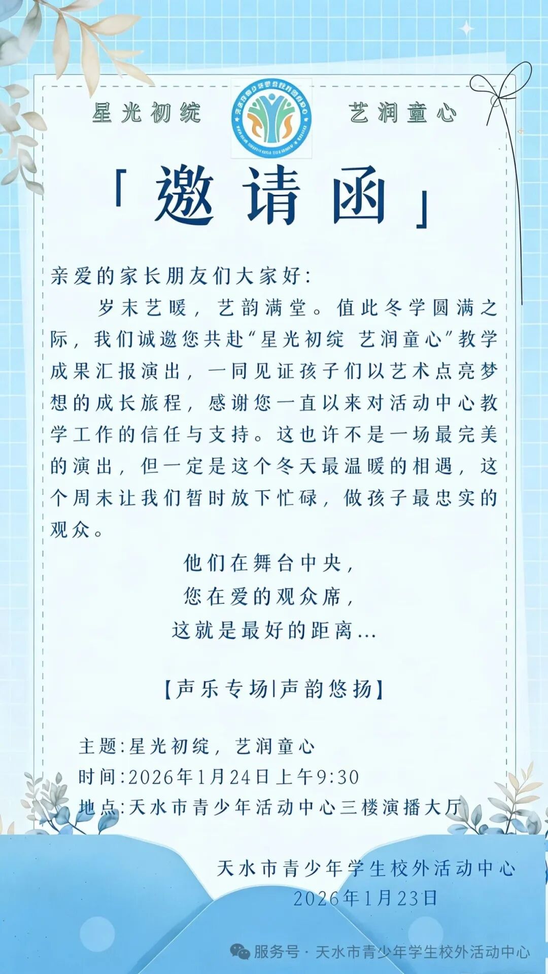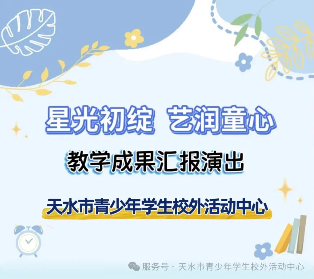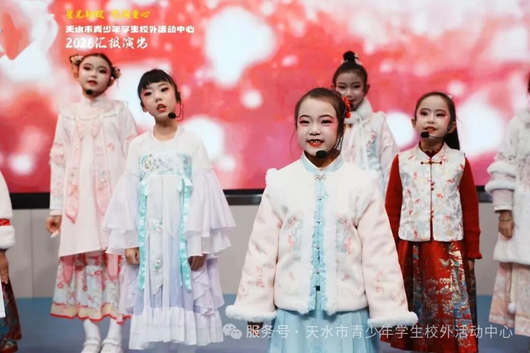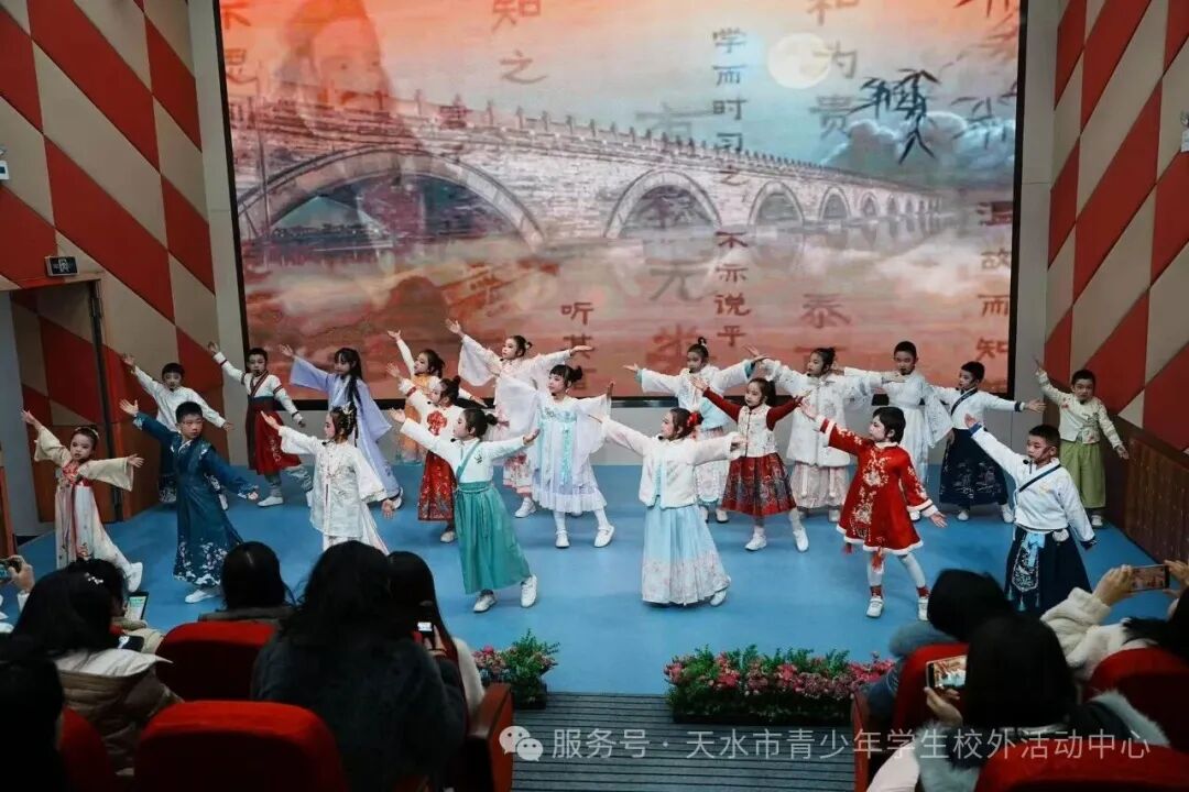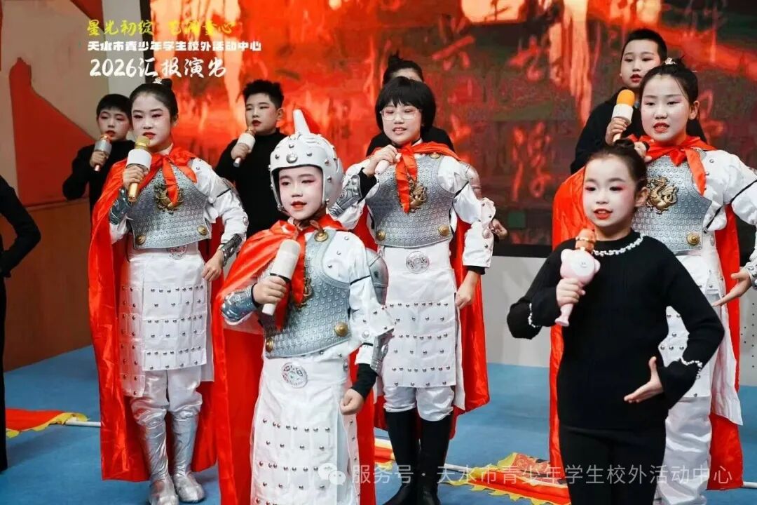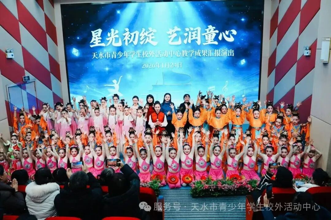 本次教学成果汇报演出圆满落幕。未来,天水市青少年学生校外活动中心将始终锚定“五育融合 赋能未来”育人理念,深耕校外美育主阵地,深挖天水本土文化底蕴,创新教学模式、精进育人质量,打造更多元才艺舞台,让少年儿童在文化浸润中增强文化自信,助力他们在艺术熏陶中涵养品格、提升素养、茁壮成长,以美育之力为他们的全面发展筑牢根基,为教育强国建设注入蓬劫青春动能。