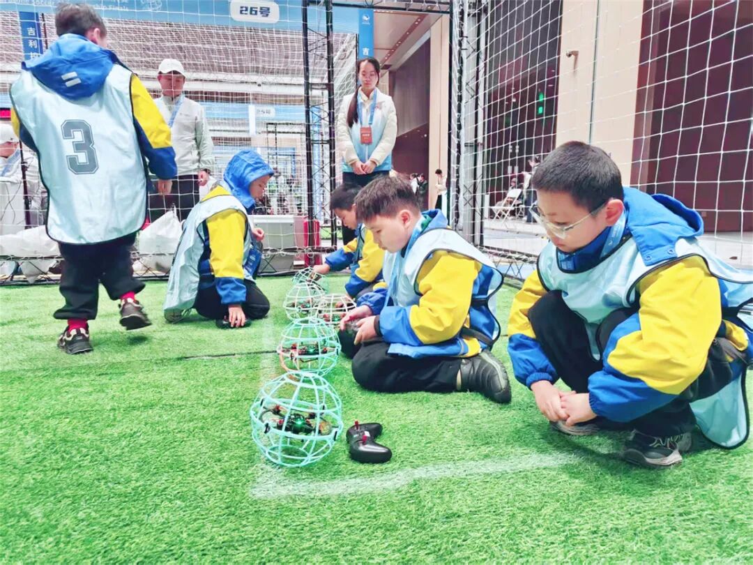 科技逐梦,赛场扬威。2026年2月7日-9日,全国无人机足球大赛总决赛在成都双流空港国际会议中心燃情开赛。这场由成都市人民政府、中国航空学会主办的科技体育盛宴,吸引了境内外1116支队伍同场竞技全国顶尖选手全国顶尖选手同台竞技,万人现场见证科技与体育的精彩碰撞。邛崃市青少年宫携手郫都区青少年科创中心助力邛崃市南街小学组建了先行幻影队、先行凌云队、先行北斗队、先行驭风队四支队伍强势出征,历经小组循环赛、淘汰赛两大阶段三日激烈角逐,最终先行幻影队一路过关斩将,斩获全国第69名的优异成绩。