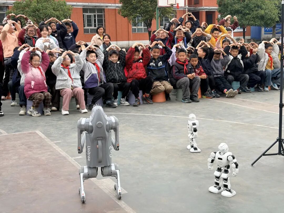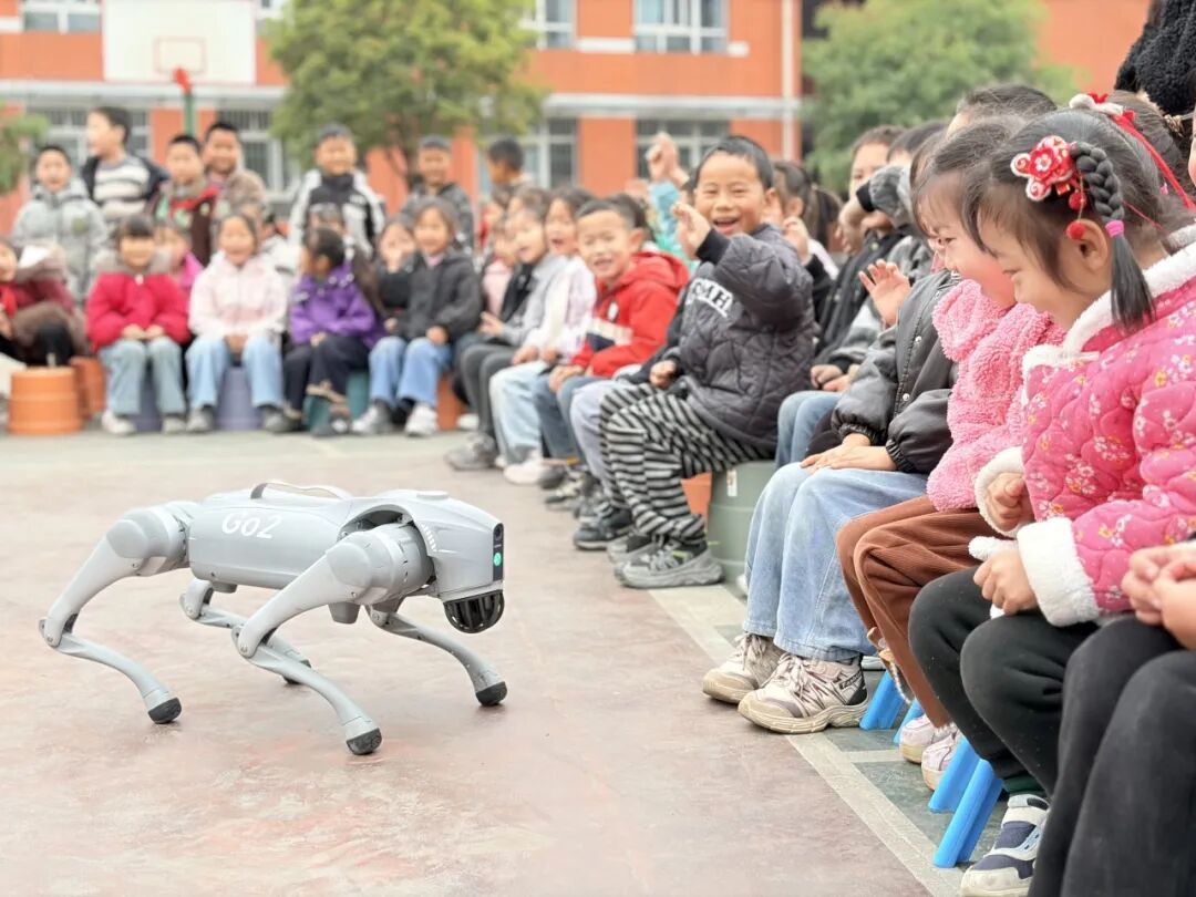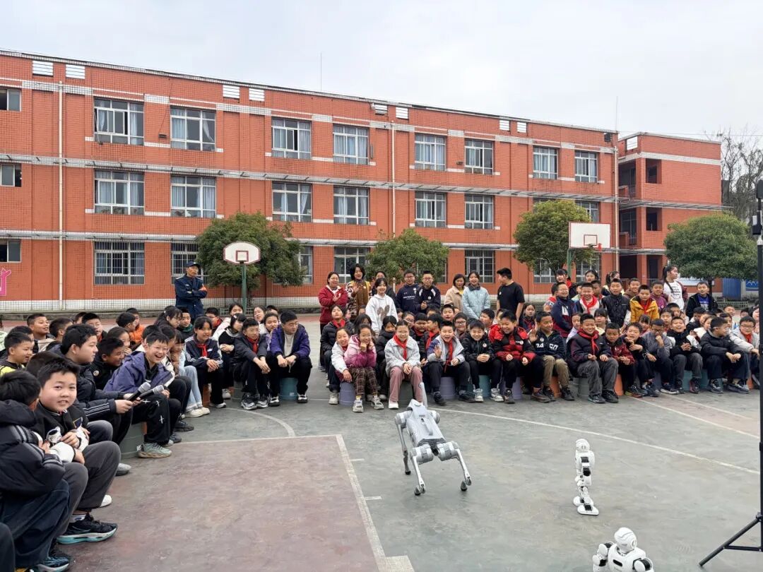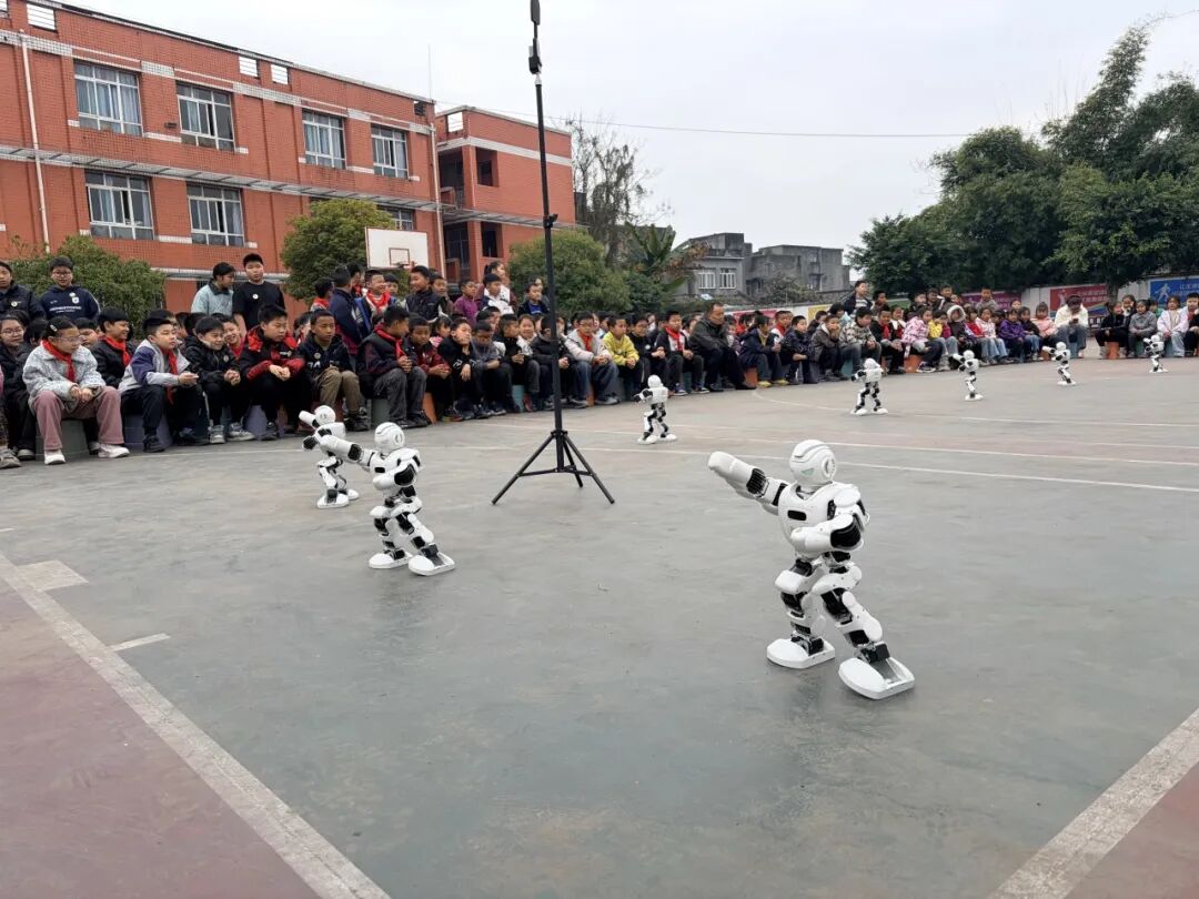 紧接着,机器人与机器狗的登场,更是将现场氛围推向小高潮。机器人伴随着欢快节奏灵活舞动,旋转、走位、展示各类动作,尽显科技灵动之美;机器狗精准完成指令,呆萌又灵动的模样深受孩子们喜爱,大家近距离观察互动,真切感受到智能科技带来的新奇体验。