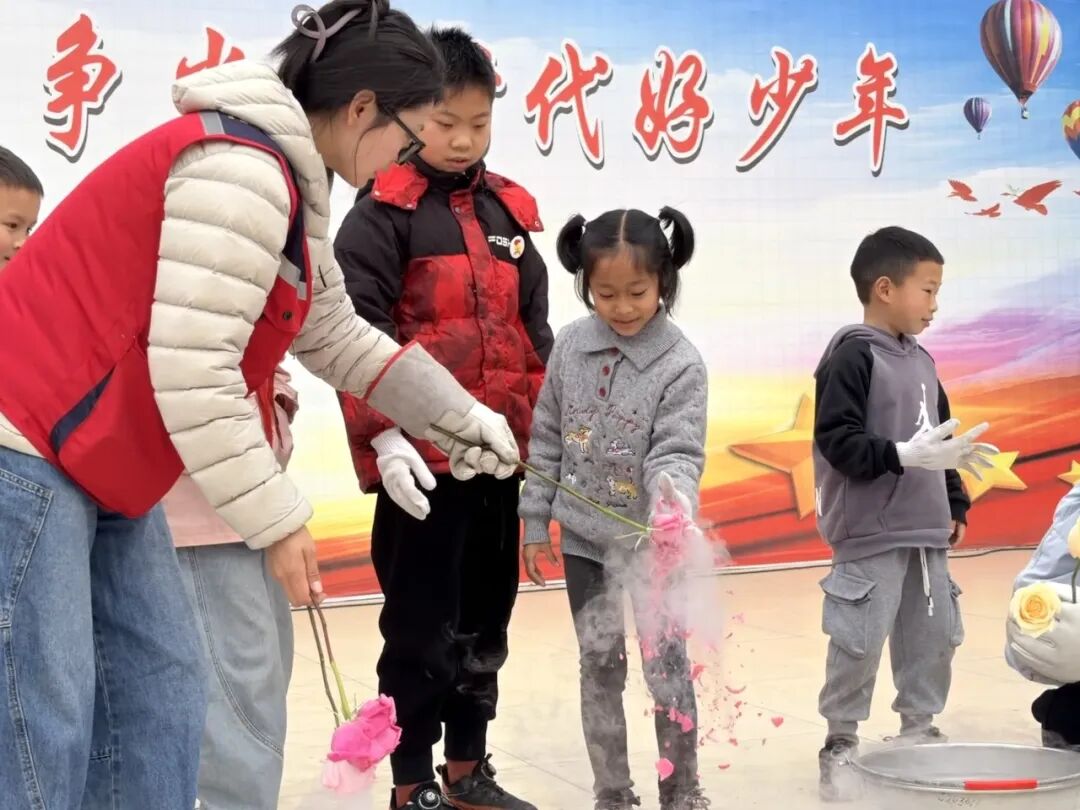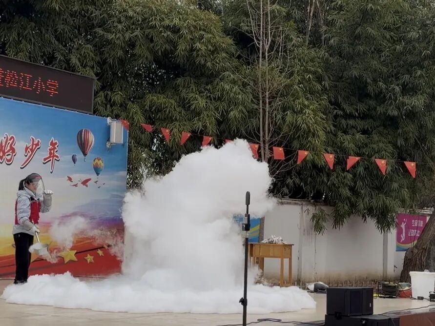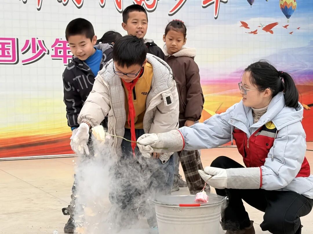 液氮实验的登场,为本次活动带来了震撼的“科学魔法秀”。空气炮实验,趣味互动,每一次冲击都引来阵阵欢呼。鲜花放入液氮后瞬间凝冻,轻触便化作细碎冰晶,奇妙的现象让孩子们惊叹不已。液氮爆炸气势十足,惊艳全场;趣味十足的实验体验,让科学的魅力深深印在每一位孩子心中。