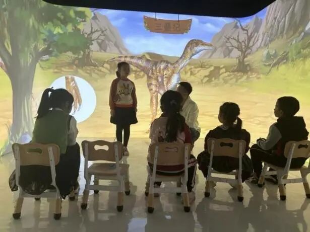 传统的阅读往往是一种线性的阅读过程,孩子通过翻开书页逐页阅读,体验较为单一,对阅读乃至学习的兴趣也寥寥。在“学习力训练课程”中,每一节课都融合全息投影融合物联网和声光特效营造身临其境的阅读氛围,让孩子在270度沉浸式极致阅读体验空间,体验全景互动阅读,做到寓教于乐。在课堂上,老师还会引导孩子观察、探索书中的场景和细节,不仅能够给孩子带来全新的阅读体验和认知方式,还能够激发他们的想象力和创造力。孩子对各个学科和领域的全面了解和深入思考,主动参与到学科知识的融合中。