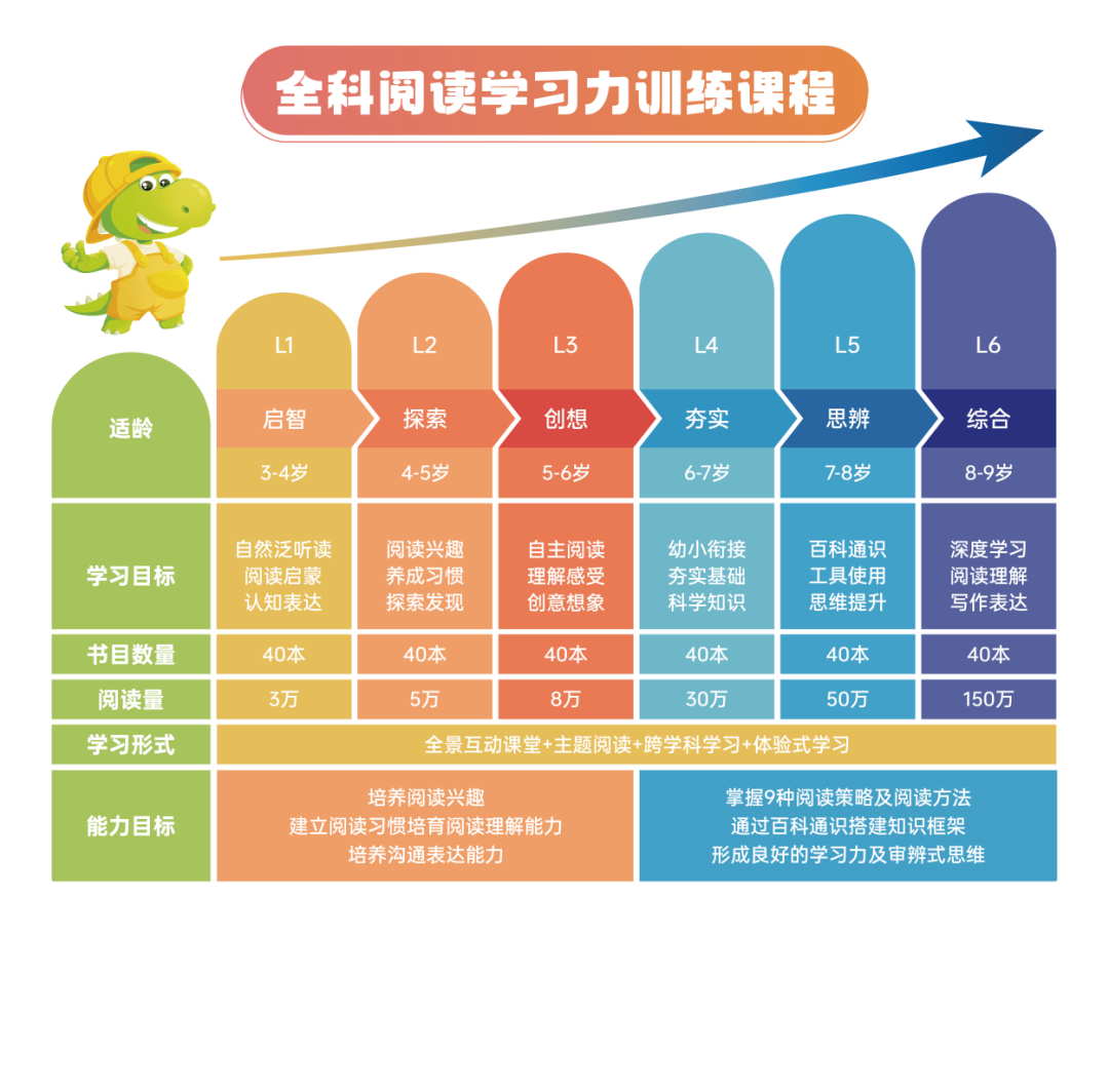 “成长秘密全科阅读学习力训练课程”通过全学科、跨领域、情境化、主题式的阅读体系,培养孩子深度的阅读和学习能力,打通学科思维,整合思辨创新,学会探索实践,真正让孩子学会用阅读去学习。