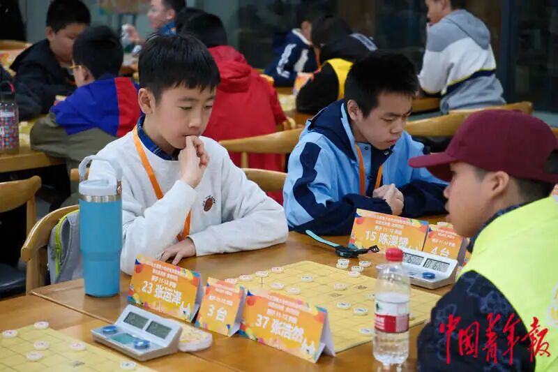 11月23日,上海金山区,2024年全国青少年传统体育项目比赛全国总决赛正在举行。在象棋赛场,参赛选手们正在激烈对弈。中青报·中青网记者 田嘉硕/摄