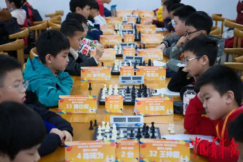 11月23日,上海金山区,2024年全国青少年传统体育项目比赛全国总决赛正在举行。在国际象棋赛场,小选手们正在激烈对弈。中青报·中青网记者 田嘉硕/摄