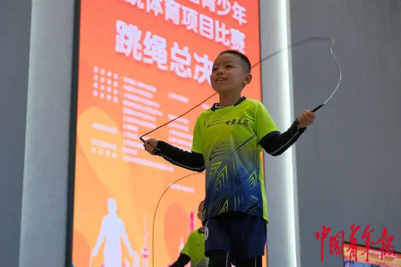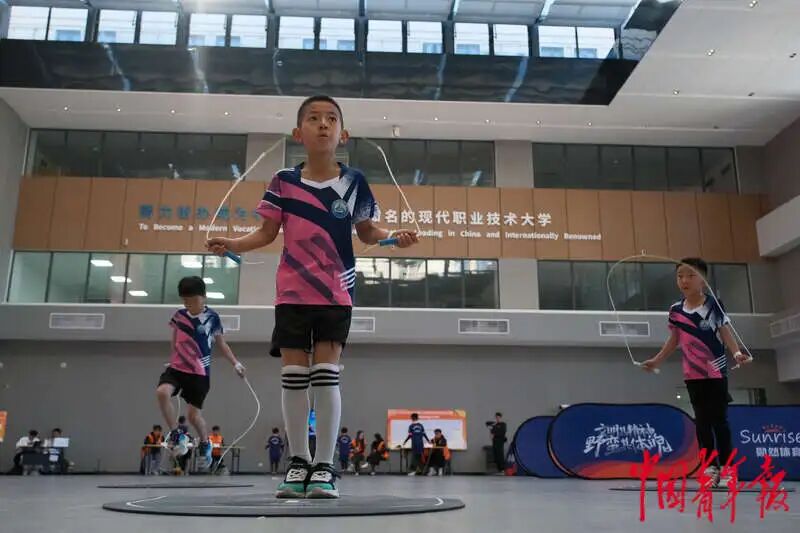 11月24日,上海金山区,2024年全国青少年传统体育项目比赛全国总决赛正在举行。在跳绳赛场,参赛选手正在进行跳绳团体竞速比赛。中青报·中青网记者 田嘉硕/摄