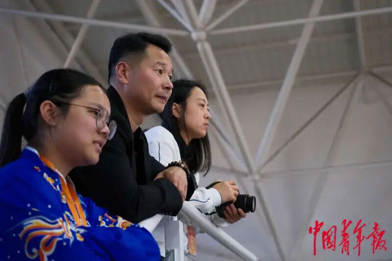 11月23日,上海金山区,2024年全国青少年传统体育项目比赛全国总决赛正在举行。在武术赛场,前来助威的选手家长们在看台观看比赛。中青报·中青网记者 田嘉硕/摄
