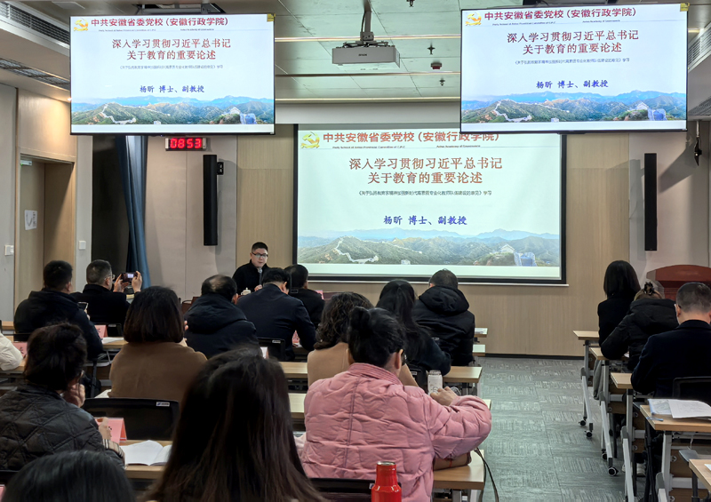 邀请安徽省委党校(安徽行政学院)杨昕副教授做《深入学习贯彻习近平总书记关于教育的重要论述》专题报告,深入学习习近平总书记在全国教育大会上的重要讲话和《中共中央国务院关于弘扬教育家精神加强新时代高素质专业化教师队伍建设的意见》。