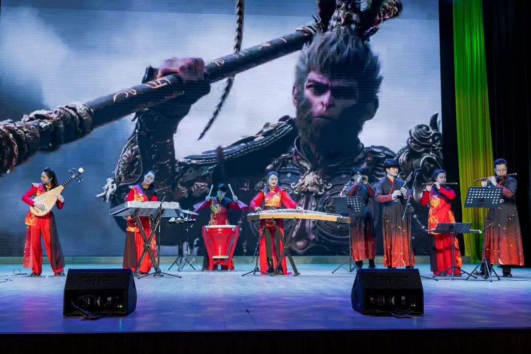 器乐演奏专场仿佛一场高雅的音乐盛宴。器乐合奏描绘出《黑神话·悟空》中奇幻磅礴的世界。各类民族乐器的独特音色相互交织,将悟空的勇敢无畏、坚韧不拔展现得淋漓尽致,让人沉浸在这充满东方奇幻色彩的音乐海洋中。独奏环节,教师们更是尽显精湛技艺。他们用音乐作为独特语言,深情地诉说着内心的情感与故事。每一个音符都充满了力量与情感。
