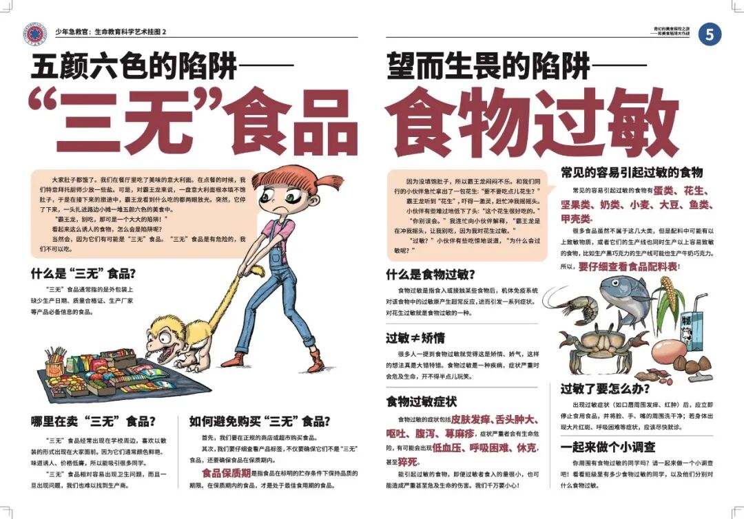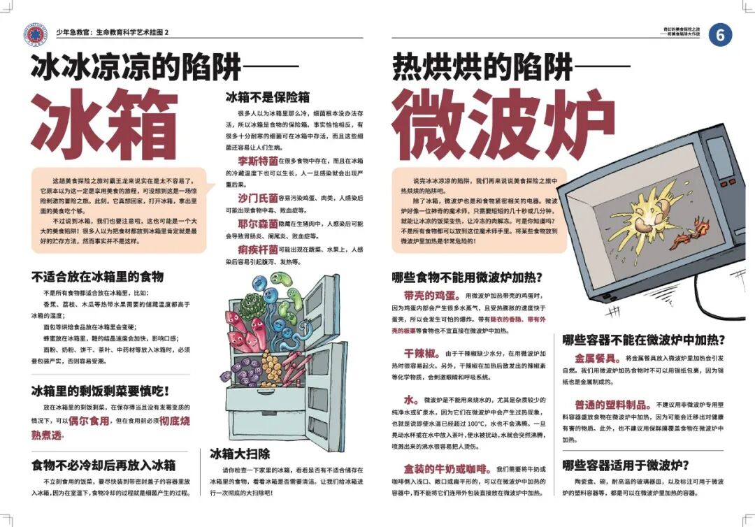 步入青少年宫,现场图文并茂的海报展览,首先吸引了儿童和家长的目光。高糖、高盐、饮料、“三无”、过敏源,还有操作不当的冰箱与微波炉,甚至受污染与有毒食物,日常饮食中的常见“陷阱”随着热闹的念诵交流被同学们一一慧眼识破。